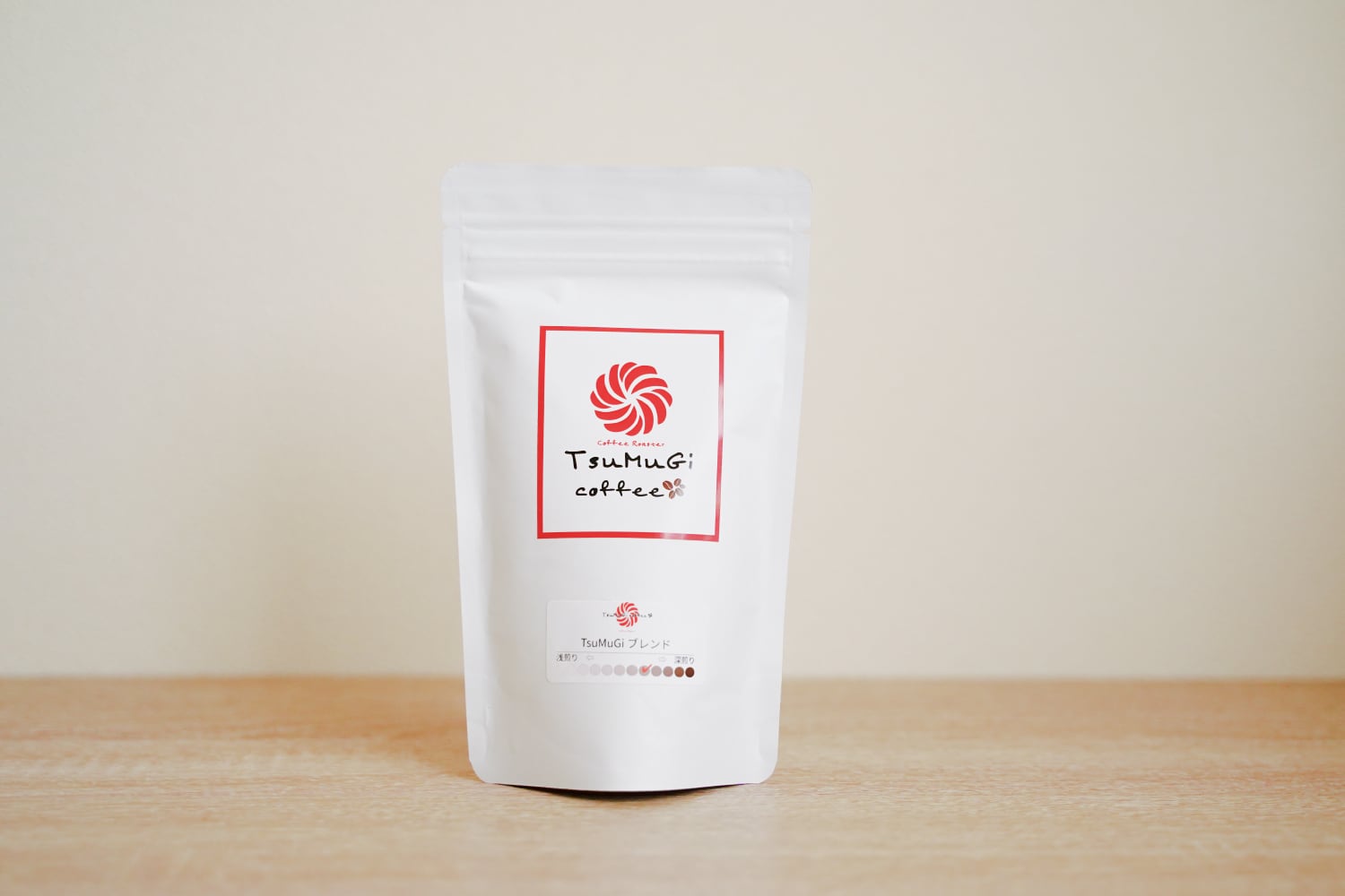 【商品内容】 ・コーヒー豆100g 【ブレンド紹介】 ■TsuMuGiブレンド 焙煎度合:中深煎り ブレンド豆:ブラジル グアリロバ イエローカトゥアイ ナチュラル、メキシコ コアティ、ケニア マサイ AA 特徴:香ばしくコクのある味わいをベースに、爽やかな香りとやさしい甘さをバランスよくまとめたブレンドです。口に含むと、ほんのり柑橘を思わせる爽やかさとナッツの香ばしさが広がり、まろやかな甘みが心地よく続きます。後味にはチョコレートのような深みとすっきりとした酸味が残り、上品で飲みやすい仕上がりです。 【ご購入にあたってのご案内】 ・本商品は"豆のまま"か"粉に挽いた状態"かをお選びいただけます。