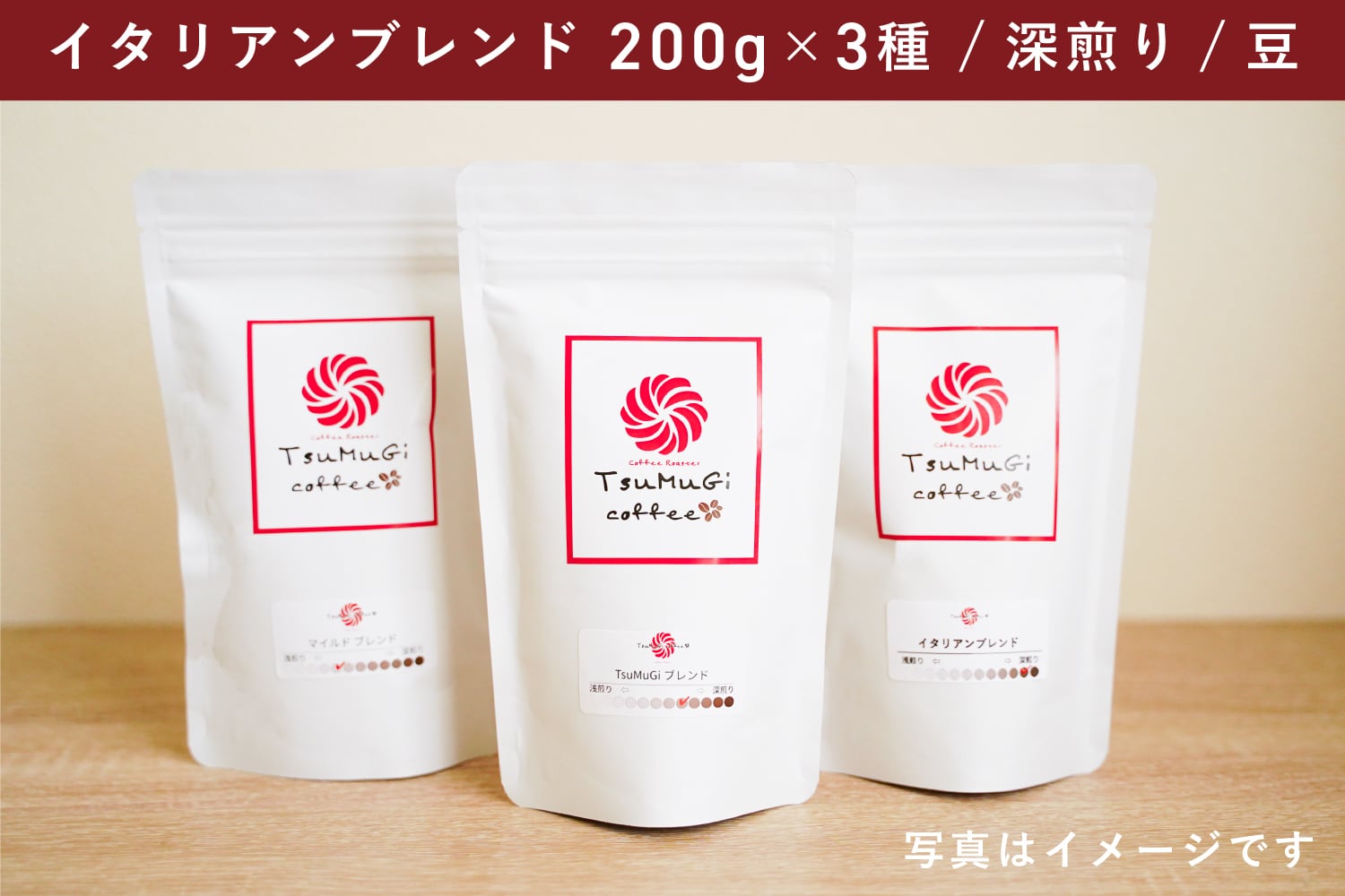 TsuMuGi定期便 イタリアンブレンド(200g×3・深煎り・豆のまま)