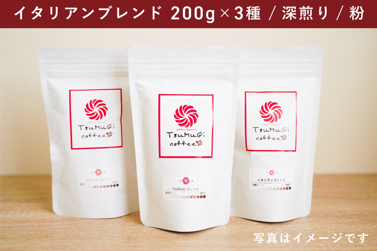 TsuMuGi定期便 イタリアンブレンド(200g×3・深煎り・粉)